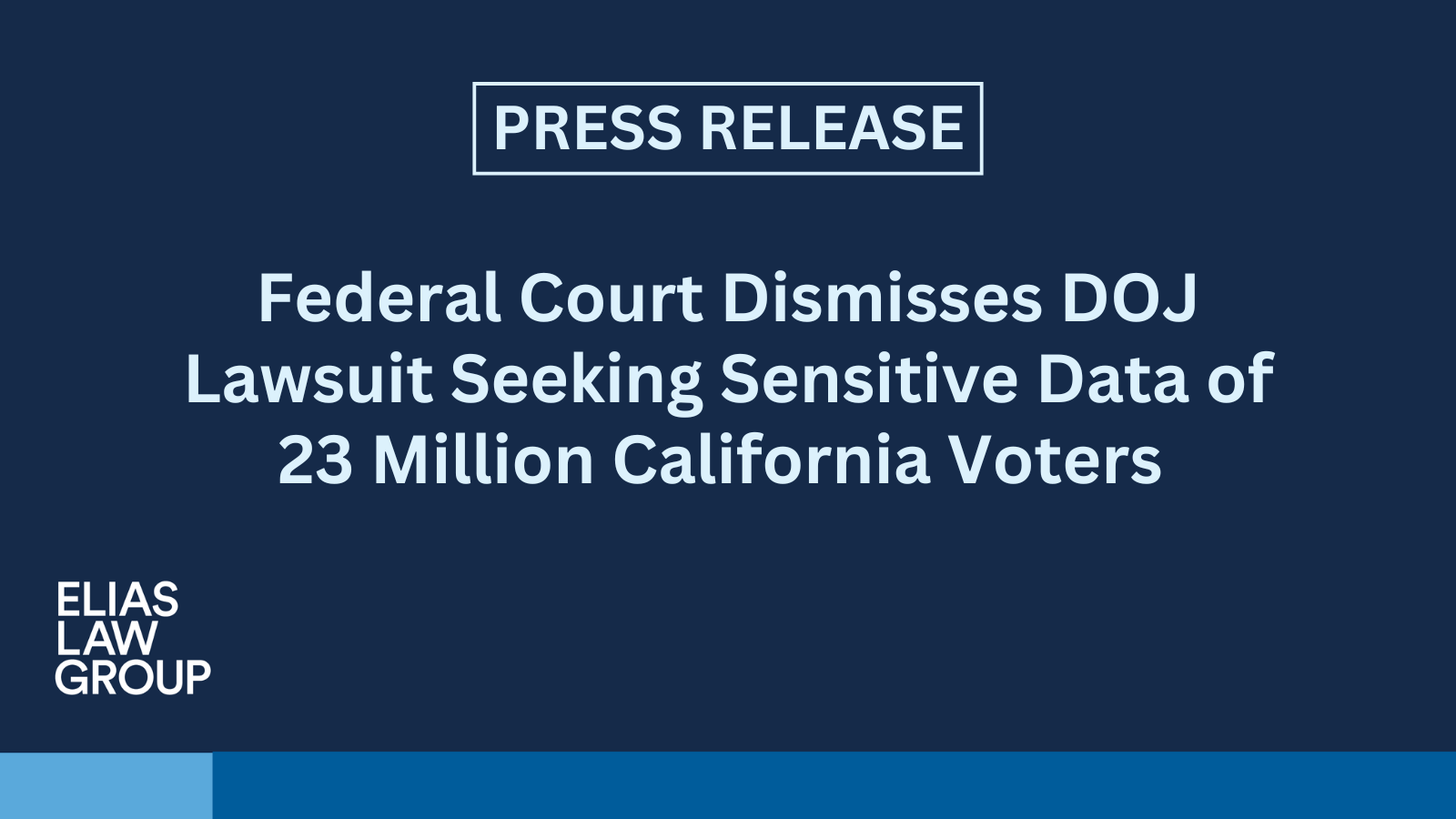WASHINGTON, D.C. – A federal court today dismissed the U.S. Department of Justice's lawsuit seeking to compel California to turn over the sensitive personal information of 23 million registered voters. U.S. District Court Judge David O. Carter granted motions to dismiss filed by the State of California and intervenor-defendants, including the NAACP, NAACP California-Hawaii State Conference, and Services, Immigrant Rights and Education Network (SIREN), who are represented by Elias Law Group.