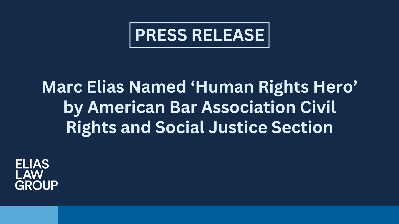 WASHINGTON, D.C. – Elias Law Group Firm Chair Marc Elias has been selected as a Human Rights Hero by the American Bar Association Civil Rights and Social Justice Section in the latest issue of Human Rights, the Section’s quarterly magazine featuring the latest expert ideas, opinions, and discourse in human and civil rights.